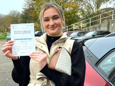Charley 1st time pass Simon was so reassuring and patient throughout lessons and made sure I felt safe and never pushed me to do anything I wasn’t comfortable with in lessons. I wouldn’t have been able to pass without him and would 100% recommend Simon to anyone! Thankyou!